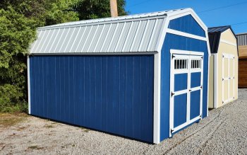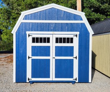 New LP-Bargain Barn. Light blue with white roof and trim.