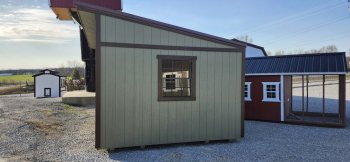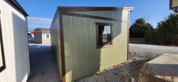 New LP-Bargain Barn. Avocado siding with dark brown roof and trim.