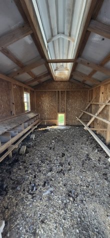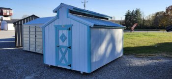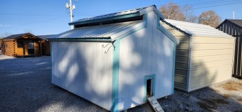 Used LP-Chicken Coop. White LP Siding with white roof and Bora-Bora trim.