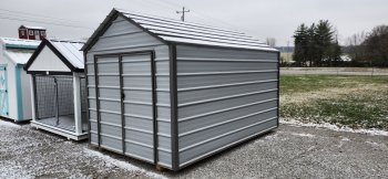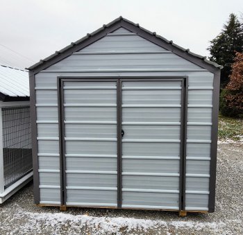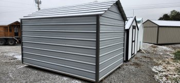 Used Metal Economy Barn, Charcoal with black roof and trim.