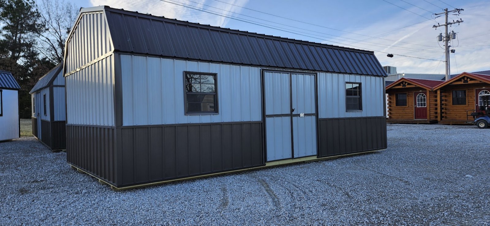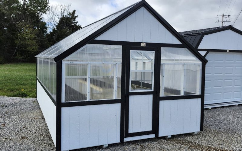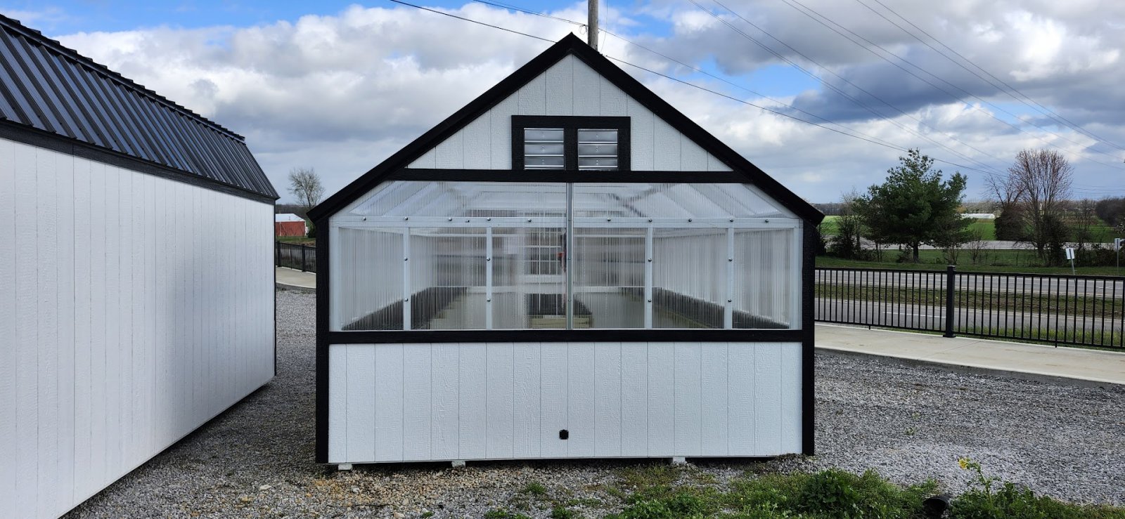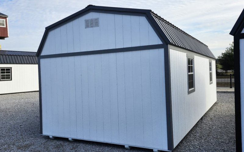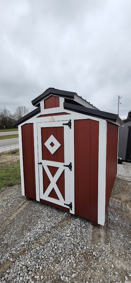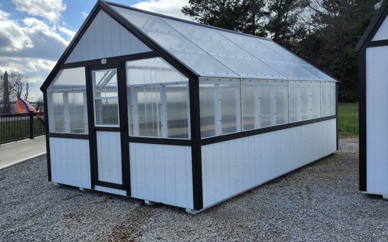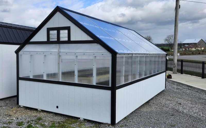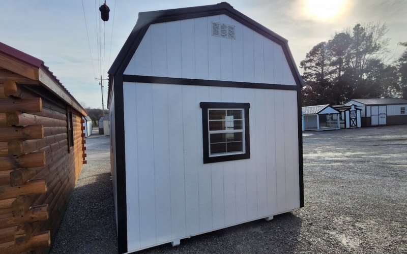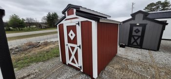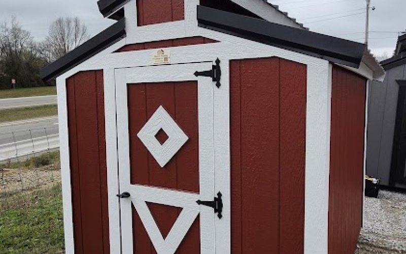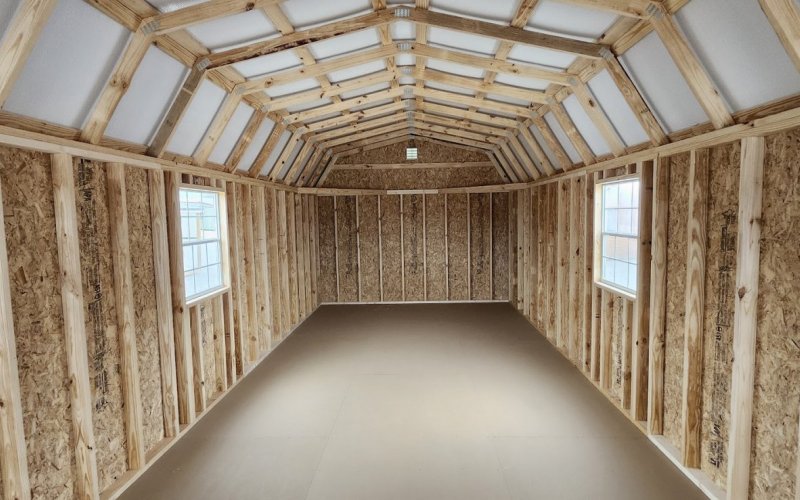 72" Double doors with transom windows Painted trim option Shelves 2' wide Shutters 2- Medium windows 3- Transom windows