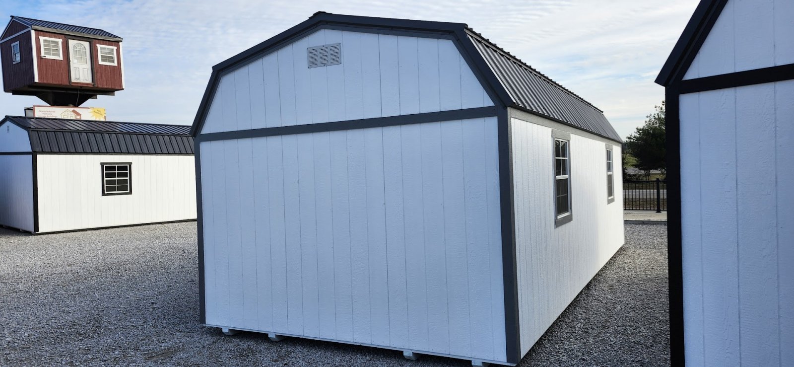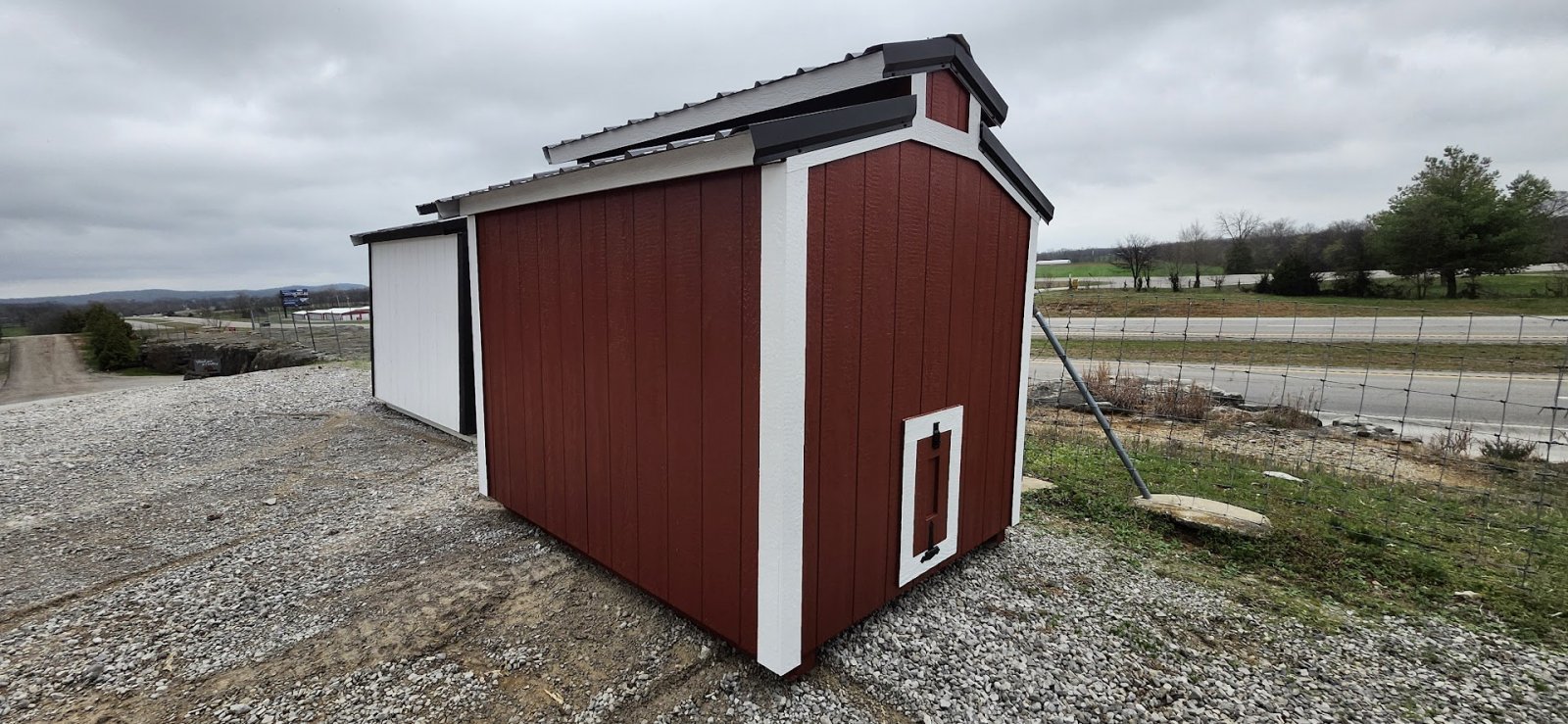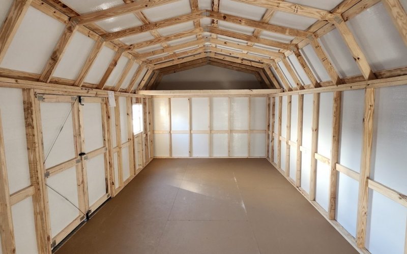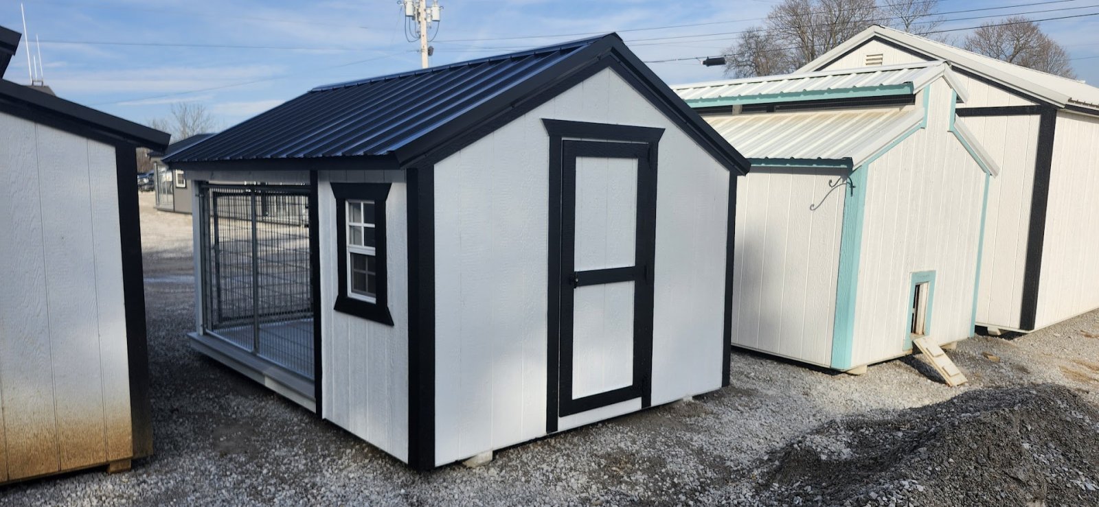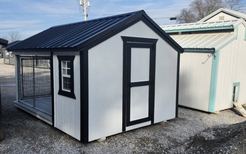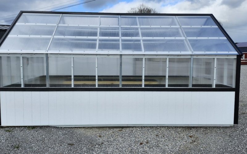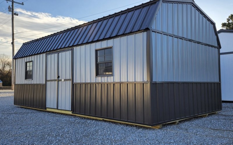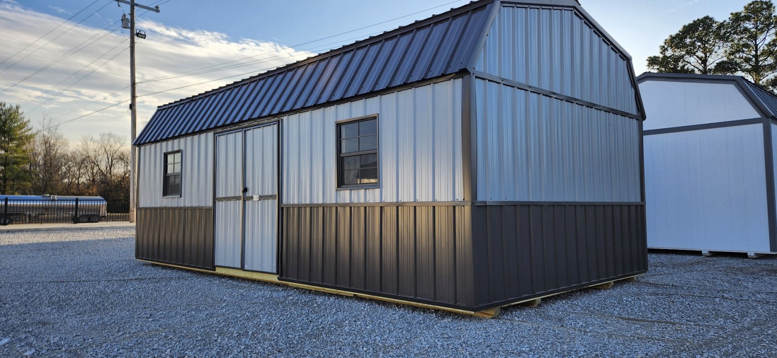 72" Double doors with transom windows Painted trim option Shelves 2' wide Shutters 2- Medium windows 3- Transom windows
