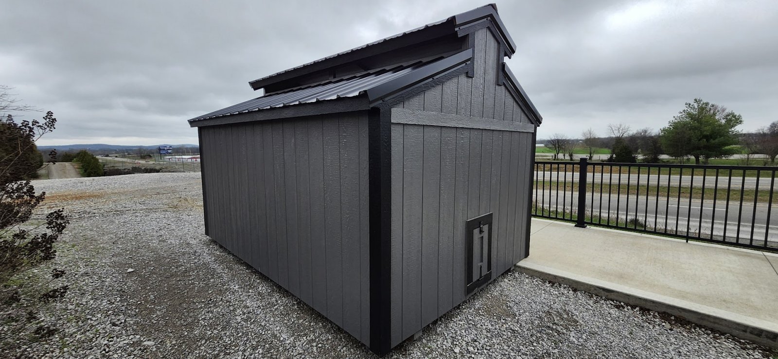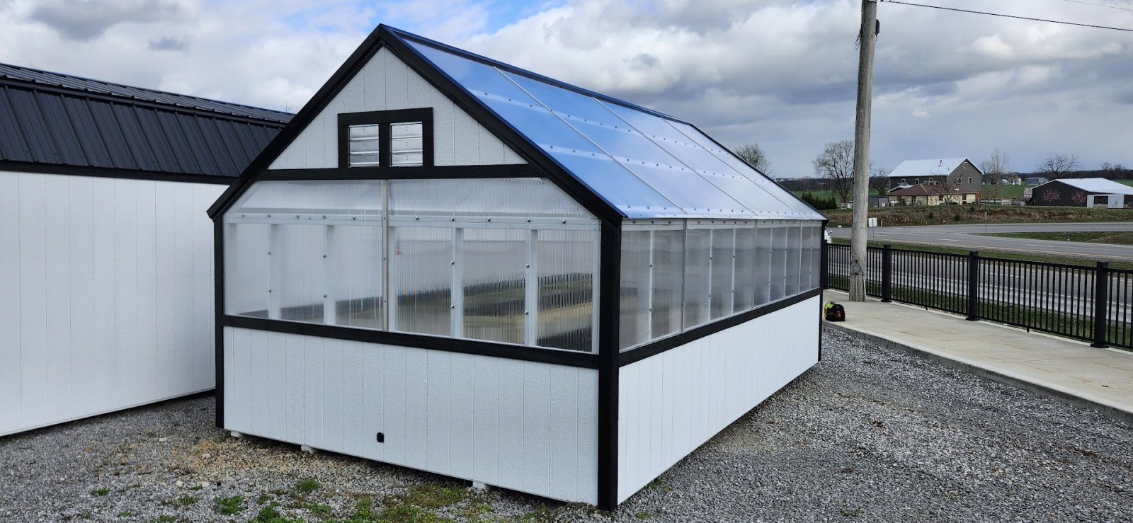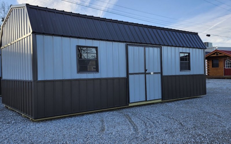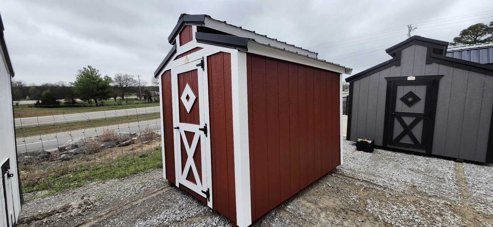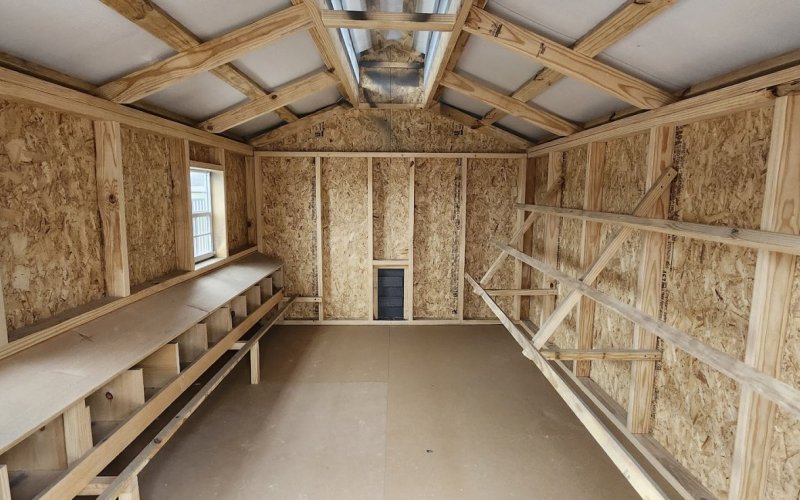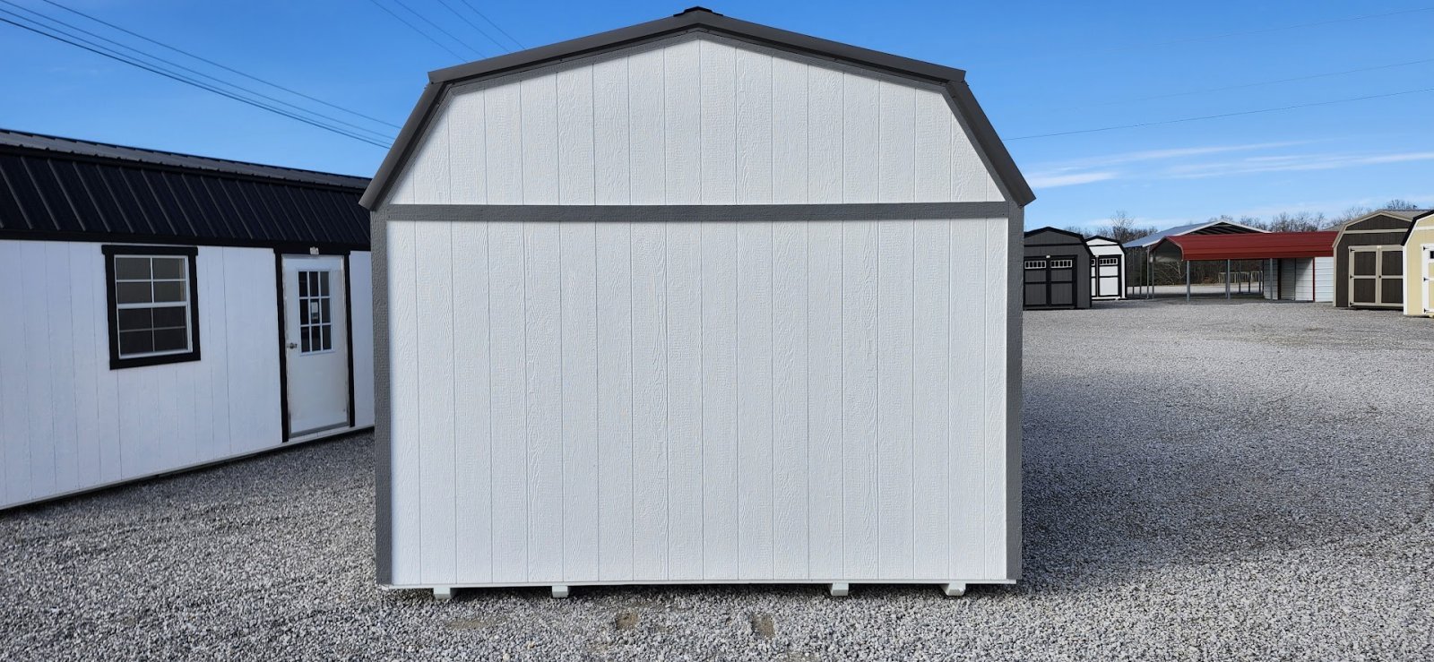 72" Double doors with transom windows Painted trim option Shelves 2' wide Shutters 2- Medium windows 3- Transom windows