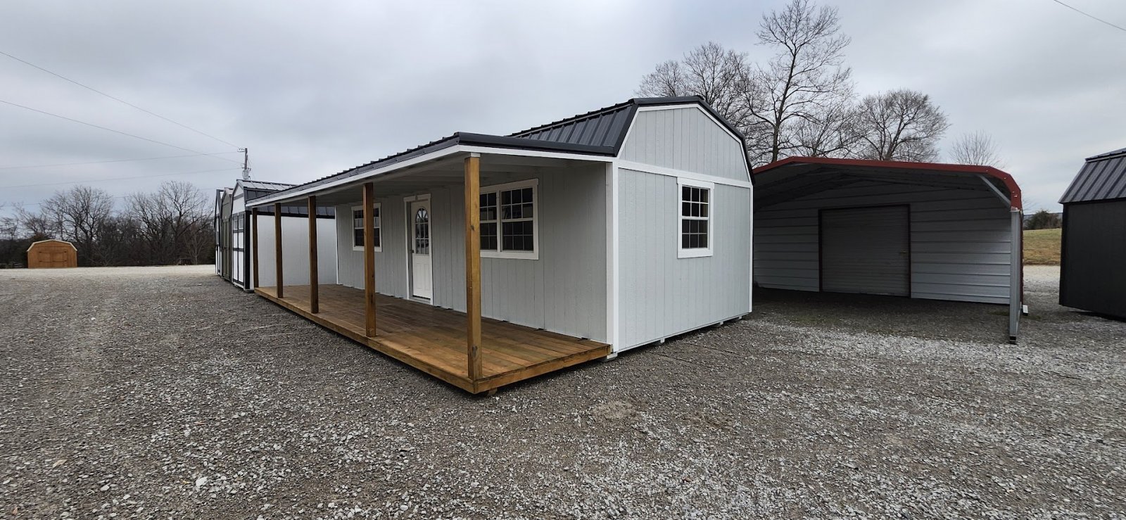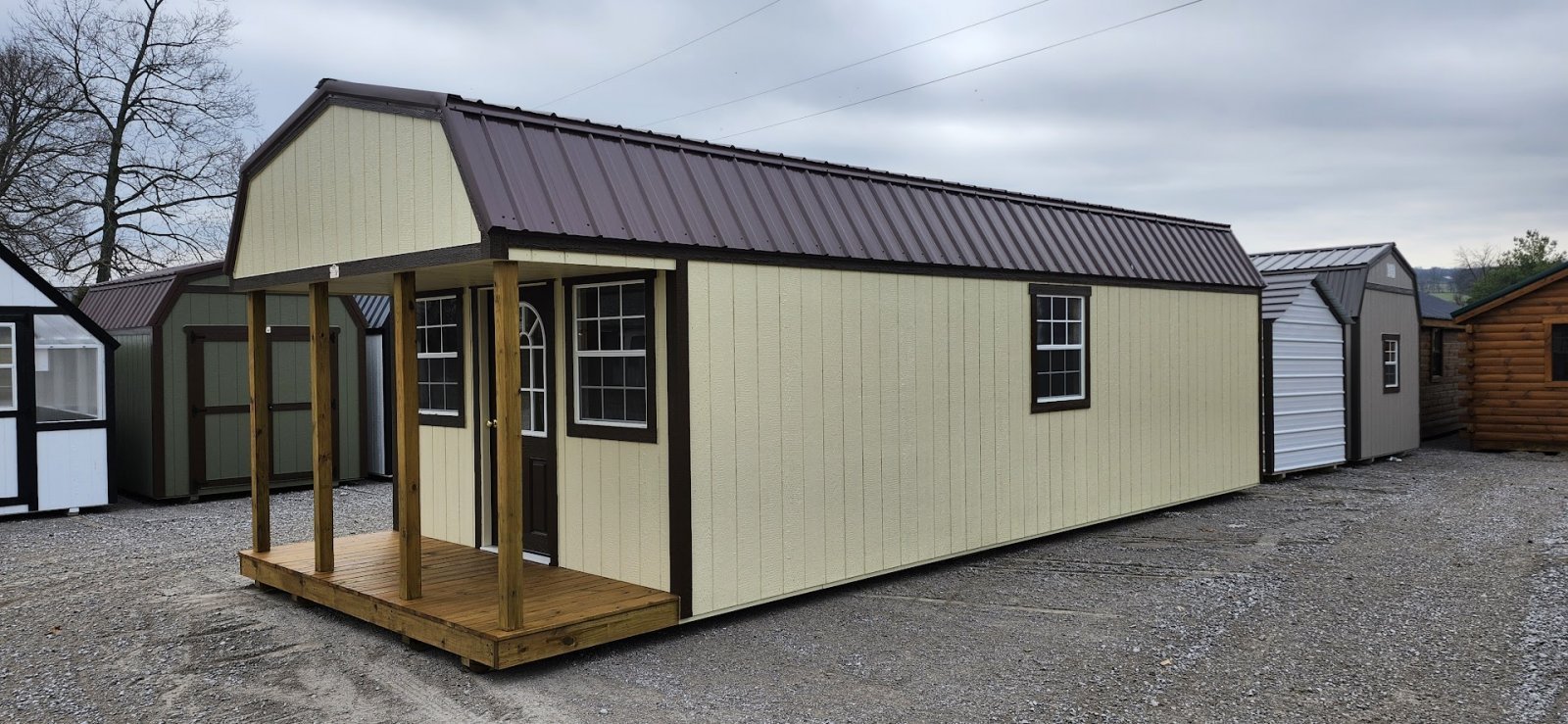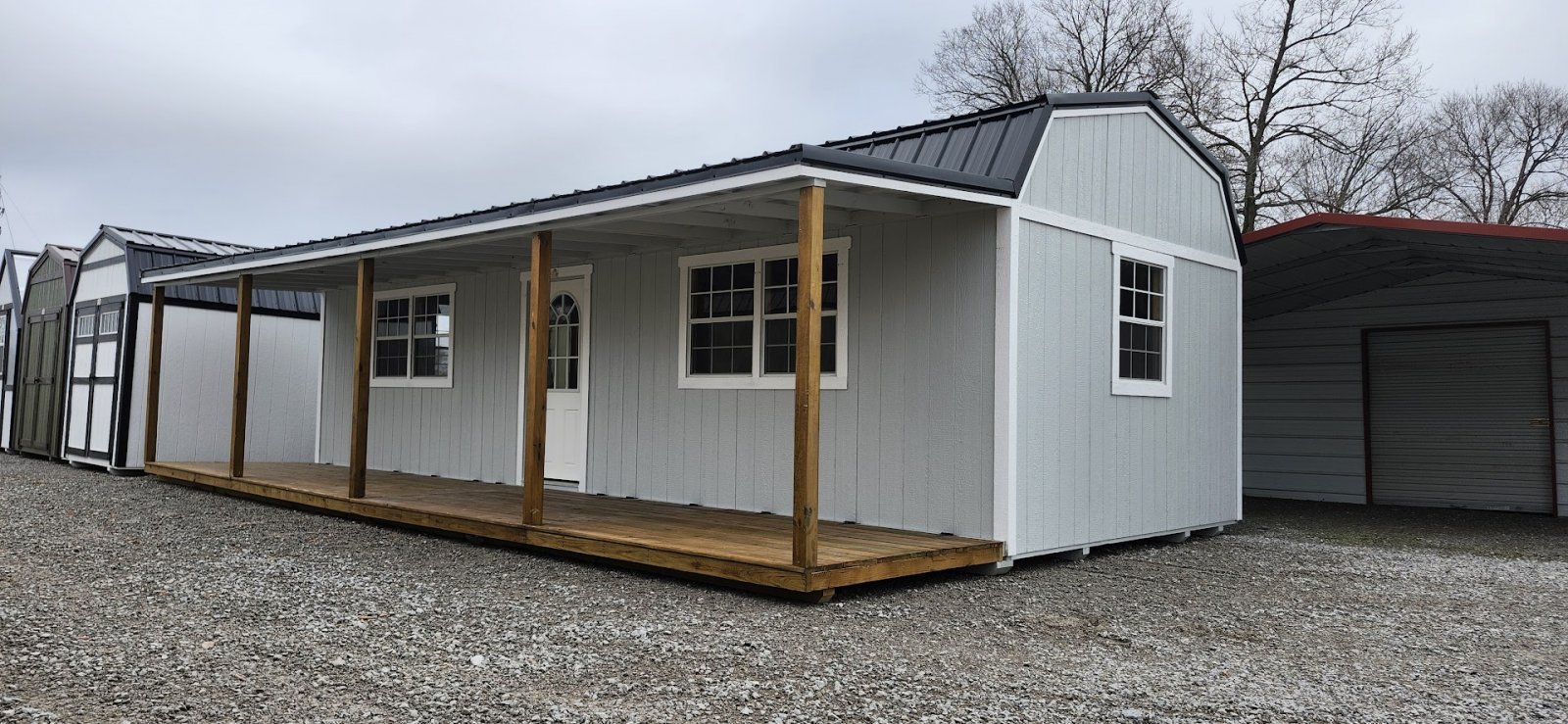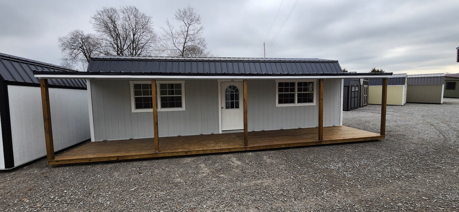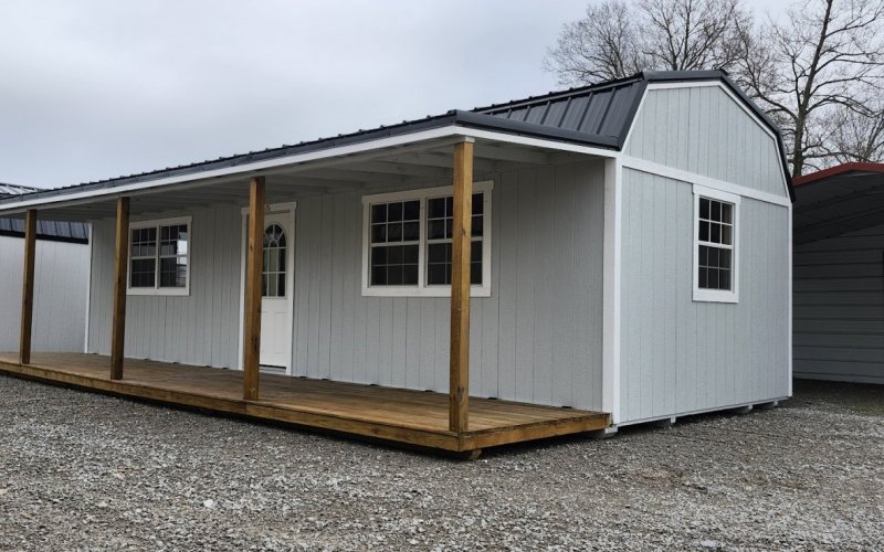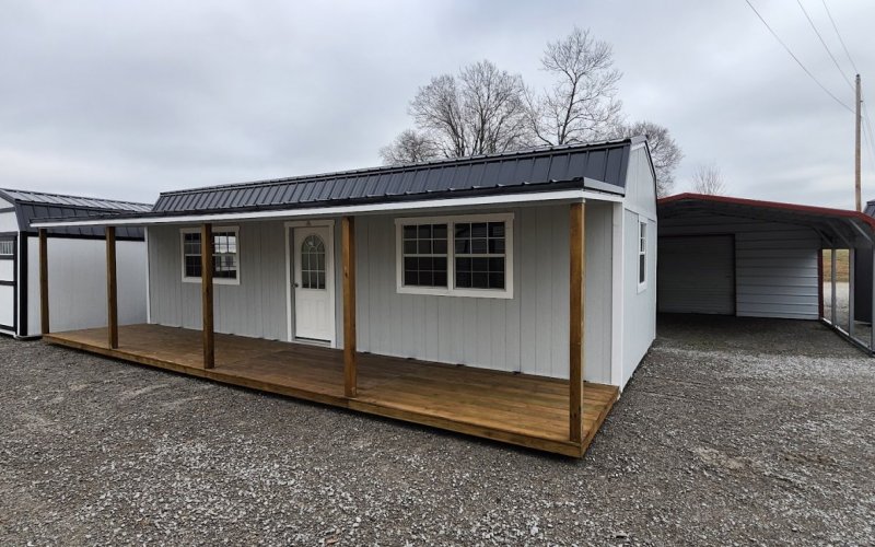 LP Cottage Porch Package: 12'x32' with a 6' full-length porch 1- Pre-hung door 2- Large windows Painted trim 4-Additional large windows
