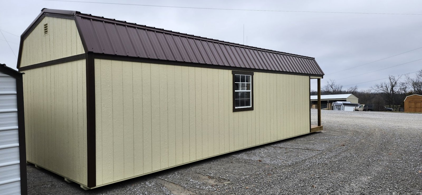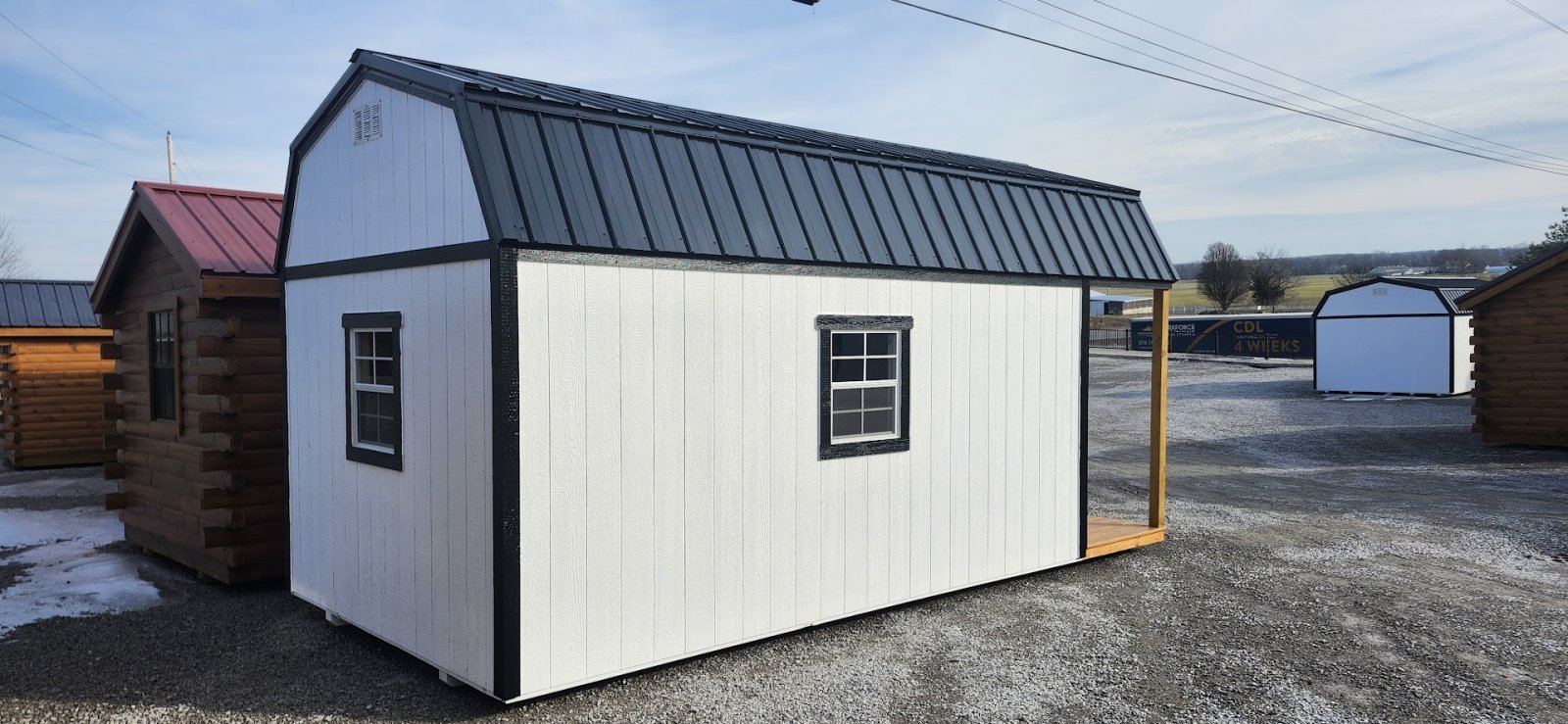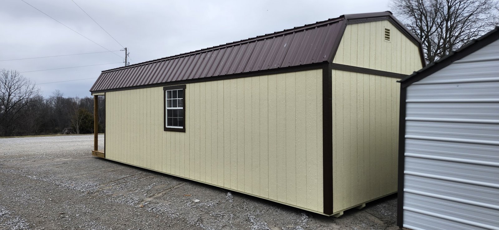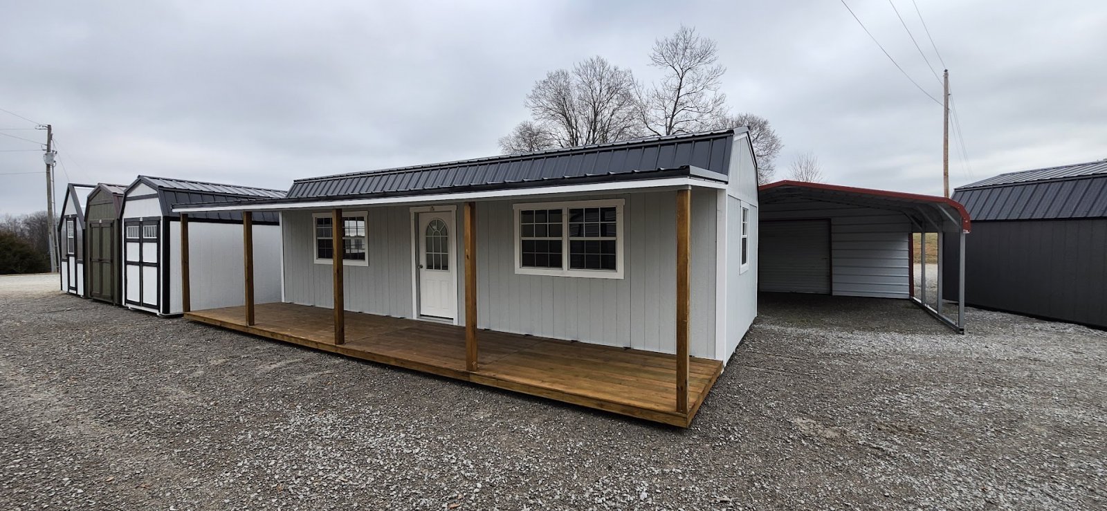 LP Cottage Porch Package: 12'x32' with a 6' full-length porch 1- Pre-hung door 2- Large windows Painted trim 4-Additional large windows