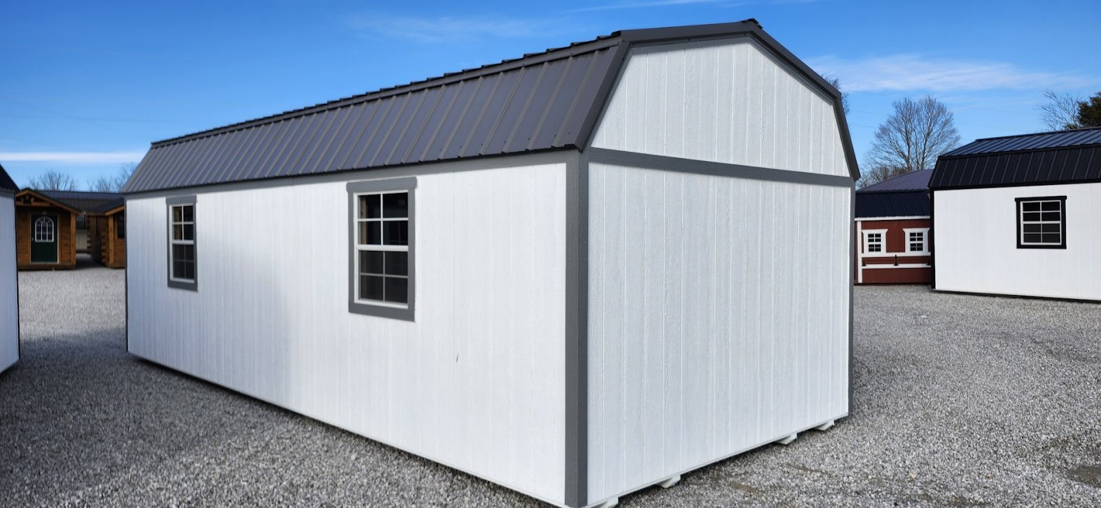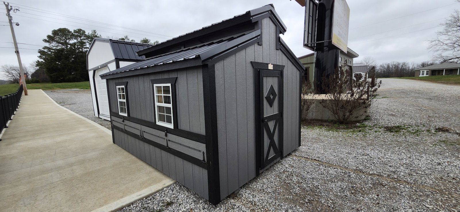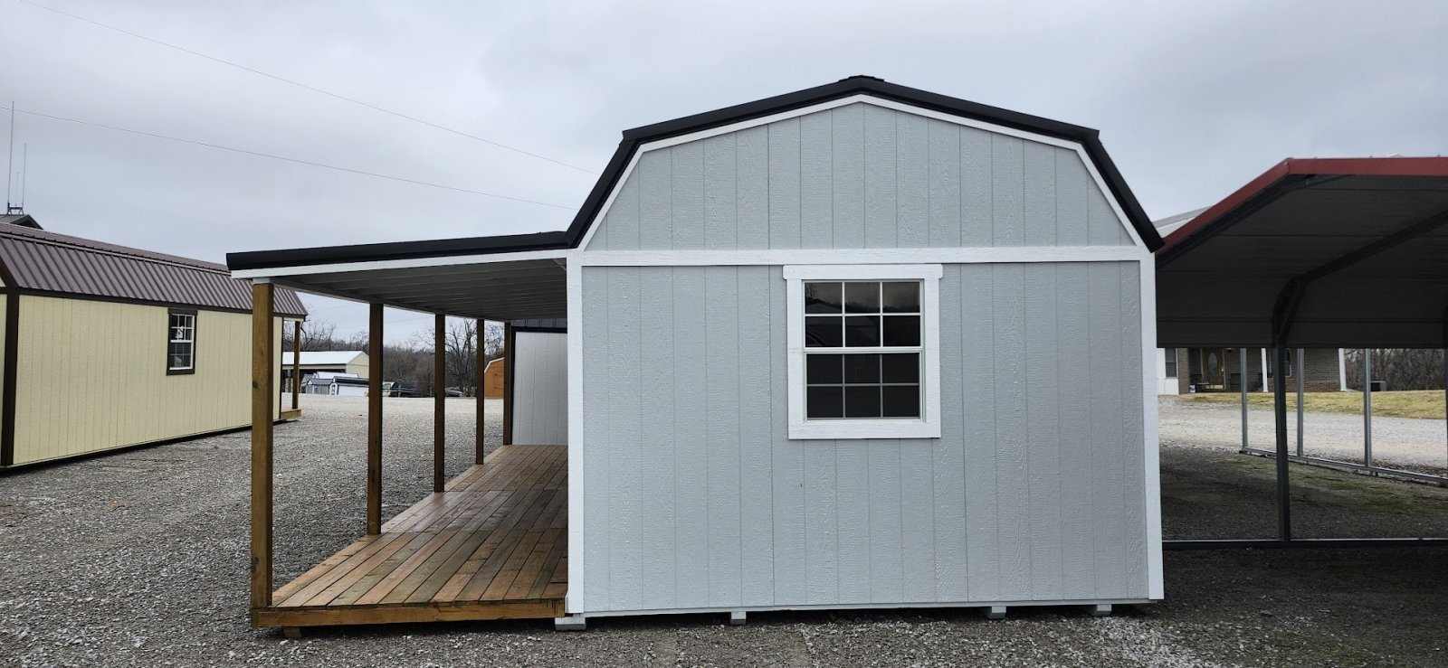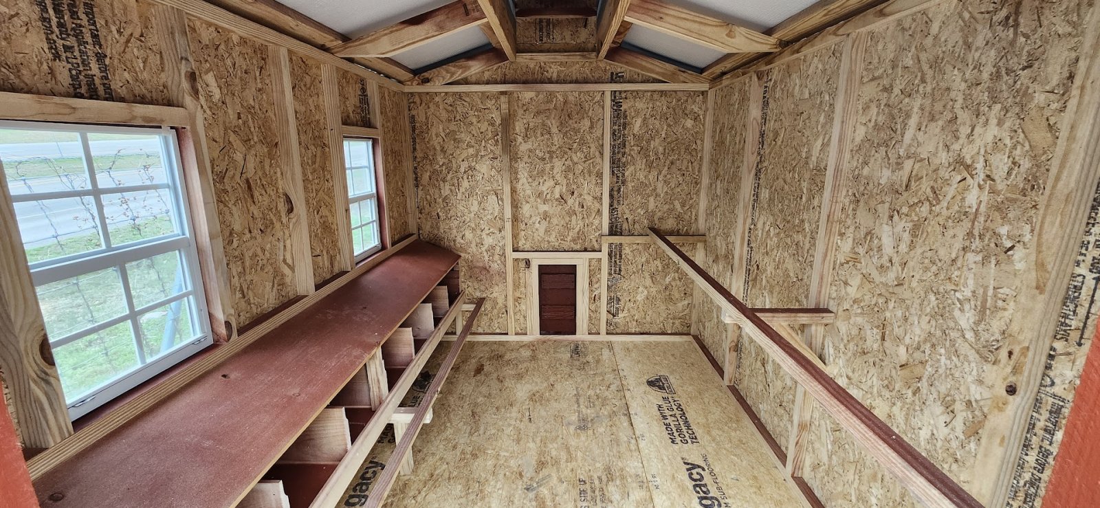 LP Cottage Porch Package: 12'x32' with a 6' full-length porch 1- Pre-hung door 2- Large windows Painted trim 4-Additional large windows