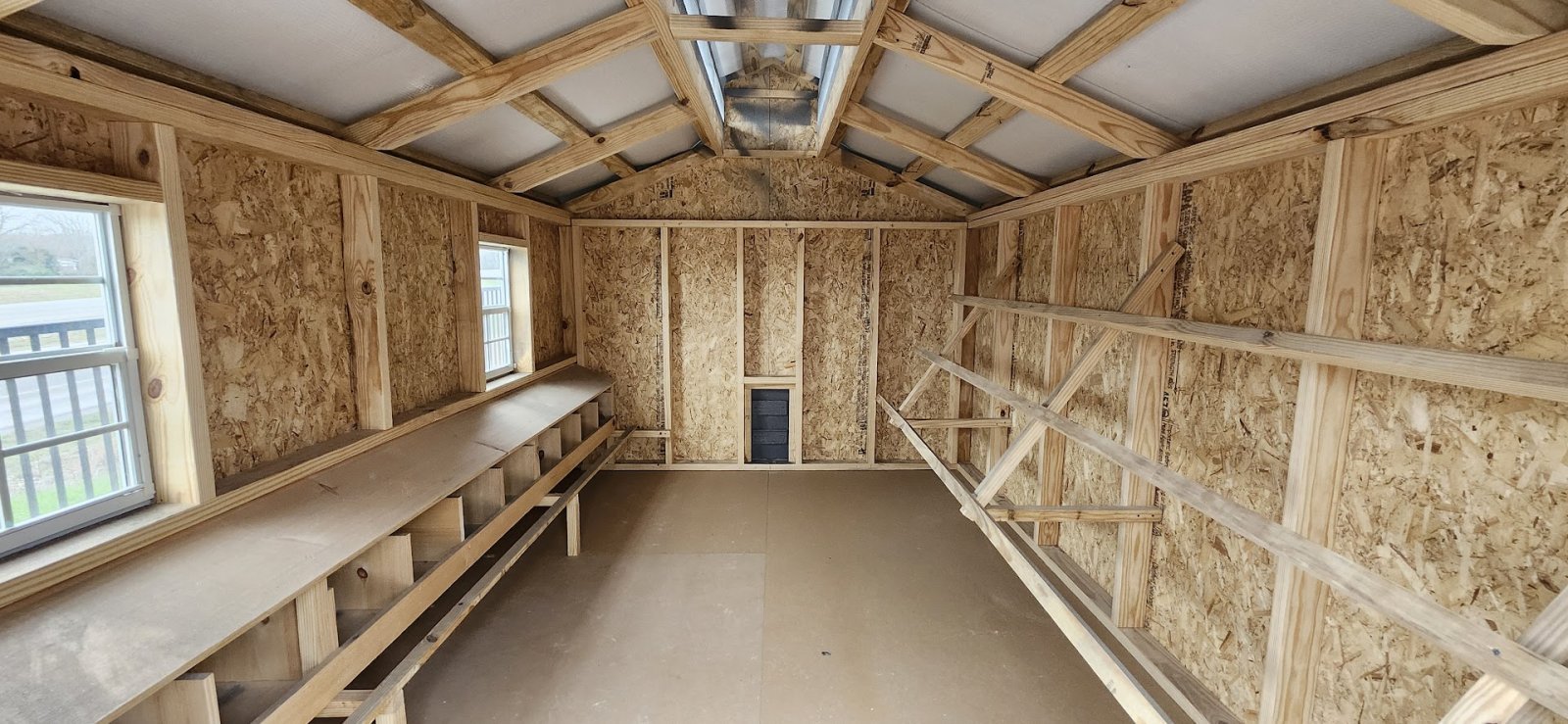 9x7 Garage door Pre-hung door 2-Large windows 4' Loft 2' shelves