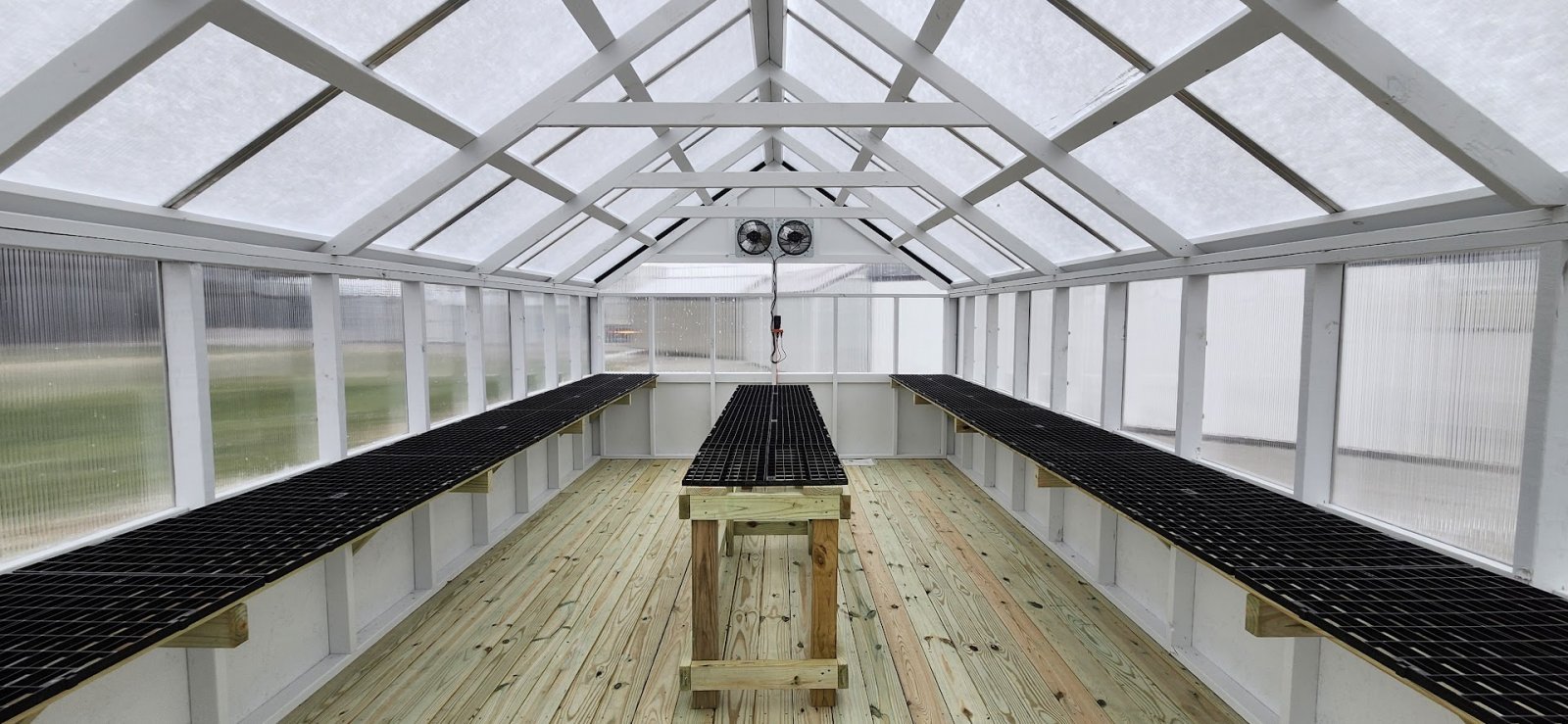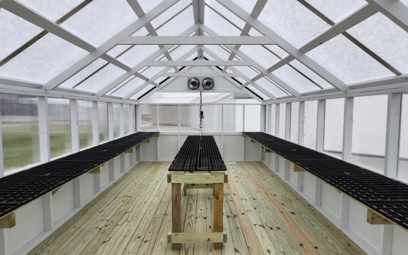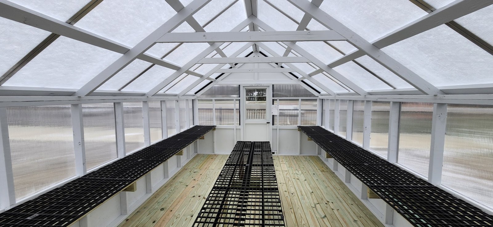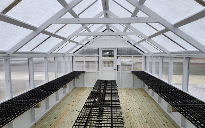 12 Nesting boxes with exterior door access 3 rows of roosting bars Chicken ramp 2 small windows
